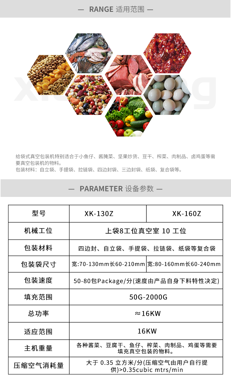 名稱:XK-130Z(XK-160Z)給袋式全自動真空包裝機